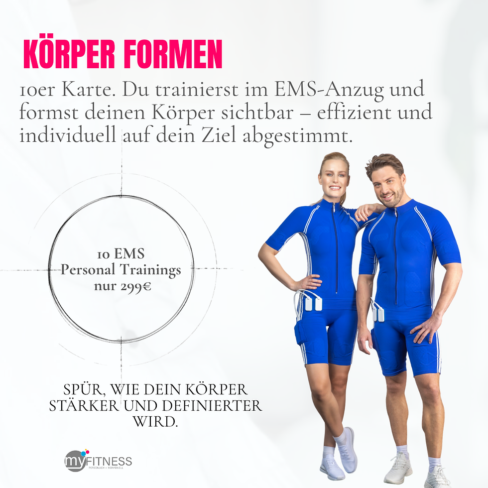 EMS Training wirkt so effektiv, weil dein Körper in kurzer Zeit maximal aktiviert wird – ohne stundenlanges Training. Mit persönlicher Betreuung, klaren Terminen und Struktur fällt es dir endlich leicht dranzubleiben und wirklich etwas zu verändern.“